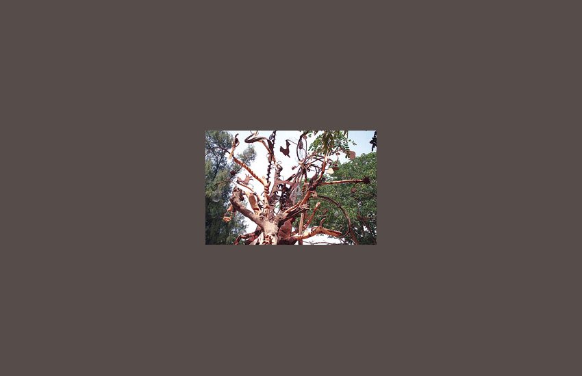 Sur la grande place de Gorée, un nouvel arbre a maintenant sa place. Son tronc, ses branches et ses feuilles sont faits de bois et de ferrailles, ses racines sont de mosaïques et ses fruits sont faits d’objets et de matériaux variés qui, de la main des artistes, ont retrouvé la vie.