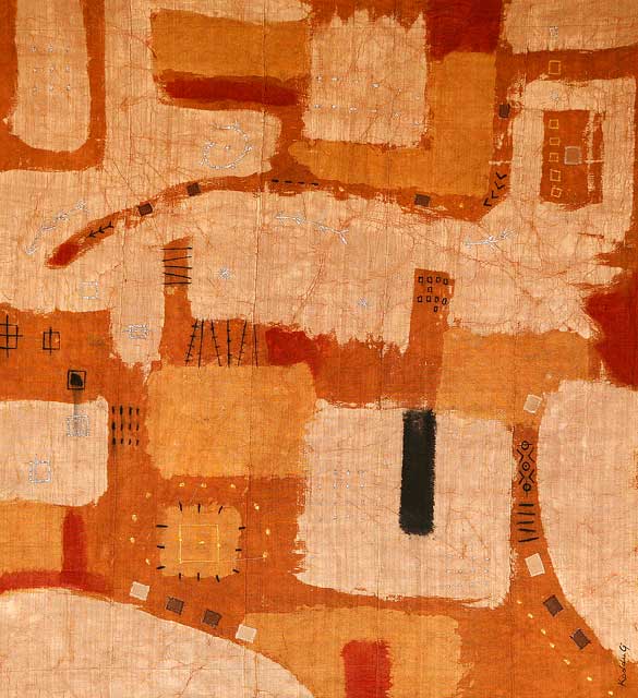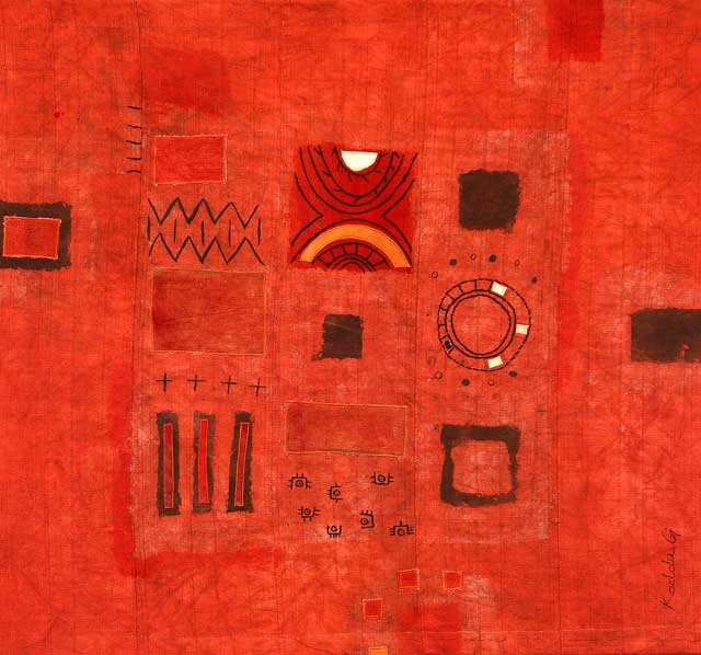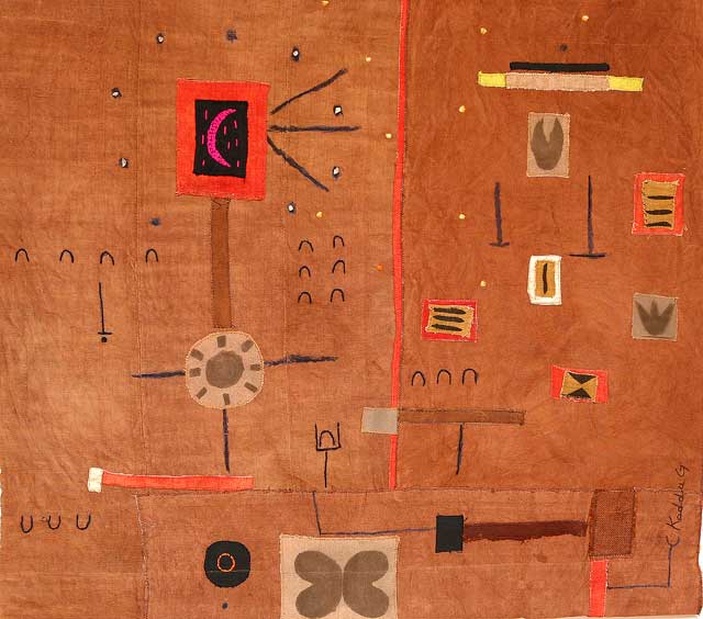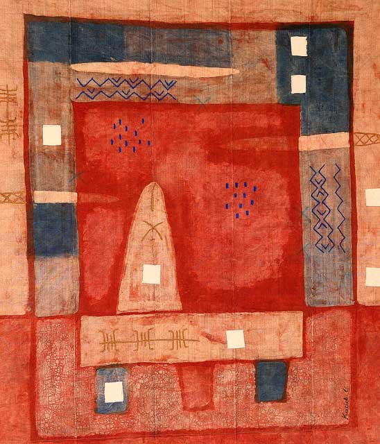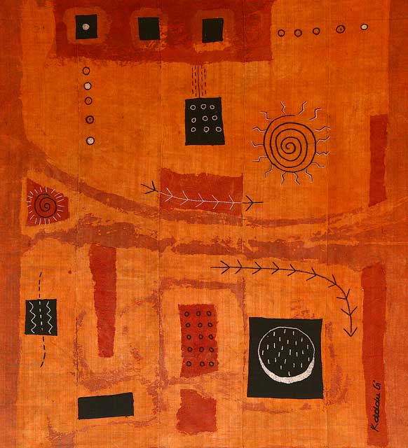 Katia et Florent Ndiaye, maîtres d’œuvres de cette exposition ont travaillé chacun de leur côté. Ils ont fouillé dans les techniques traditionnelles, notamment la teinture, la broderie, la couture avec comme support de base, des étoffes du pagne tissé, encore appelé pagne Manjack ou « Seru njaago ». L’exposition de 16 œuvres résume tout le charme et l’importance de la parole en Afrique, la teneur du discours des couleurs utilisées dans la teinture et la connexion de ses techniques à un monde contemporain. Une manière pour eux, de présenter les aspects positifs du continent africains. « Retour aux sources », « Terre », « Harmattan », « Pays dogon » sont les titres de quelques uns des chefs d’œuvres réalisés suite au savoir faire fécond du couple Ndiaye. Installés à Mboro, depuis plusieurs années, l’écho de voix de Kaddu Gi, a dépassé les frontières du Sénégal.