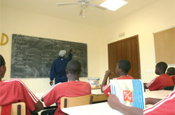 Tout individu a besoin d’éducation, quel que soit son domaine d’activité. Soucieux de cela, l’établissement met l’accent sur la scolarisation de ces pensionnaires. Matar Fall, très jeune, a bien compris cette leçon et a décidé de bosser très dur à l’école. « Un milieu de terrain très teigneux » comme l’a noté Iba Diagne le chargé de communication de l’institut, Matar a contracté une blessure au genou en juin durant les vacances d’été. Il travaille dur en classe, car déjà conscient qu’on peut réussir au foot comme ailleurs dans la vie. Un joueur ayant déjà atteint le haut niveau on peut quitter les terrains sur un simple accident. Pour anticiper de pareilles éventualités, l’institut a mis en œuvre un programme débouchant sur différents métiers de la vie. L’objectif, c’est d’asseoir une autonomie L’institut fonctionne sur un mode administratif associatif avec cinq promotions de jeunes internés. C’est par un mode hôtelier, en plus de la scolarité et de l’encadrement sportif, que l’institut fonctionne. Plus de soixante employés assurent les services d’hébergement, de restauration, de scolarité et d’administration. Les premières ressources proviennent des membres. Au delà, la contribution des différents partenaires permettent de prendre en charge certaines dépenses liées au fonctionnement de l’institut. « On travaille sur un mode basé sur le triptyque : jeunesse - études - sport » confie le président de l’institut. Les stages-foot Diambars comme ceux de Jean Michel Larquet en France et les colonies de vacances sont également des activités rémunératrices pendant les périodes de vacances, sans oublier la location d’infrastructures. « Avec la piscine et les terrains synthétiques gazonnés prévus, nous serons en mesure d’accueillir des équipes nationales et des clubs professionnels » projette M. Seck ; autant d’activités qui permettront de subvenir aux charges de fonctionnement du centre. Les jeunes joueurs ont séduit le public européen. Certains recruteurs ont été séduits par les pensionnaires de l’Institut Diambars et ont eu l’oeil sur eux durant leurs déplacements en Europe. Certains l’ont dit ouvertement tandis que d’autres ont préféré rester discret. Des agents se sont même déplacés pour les voir aux entraînements à Saly.