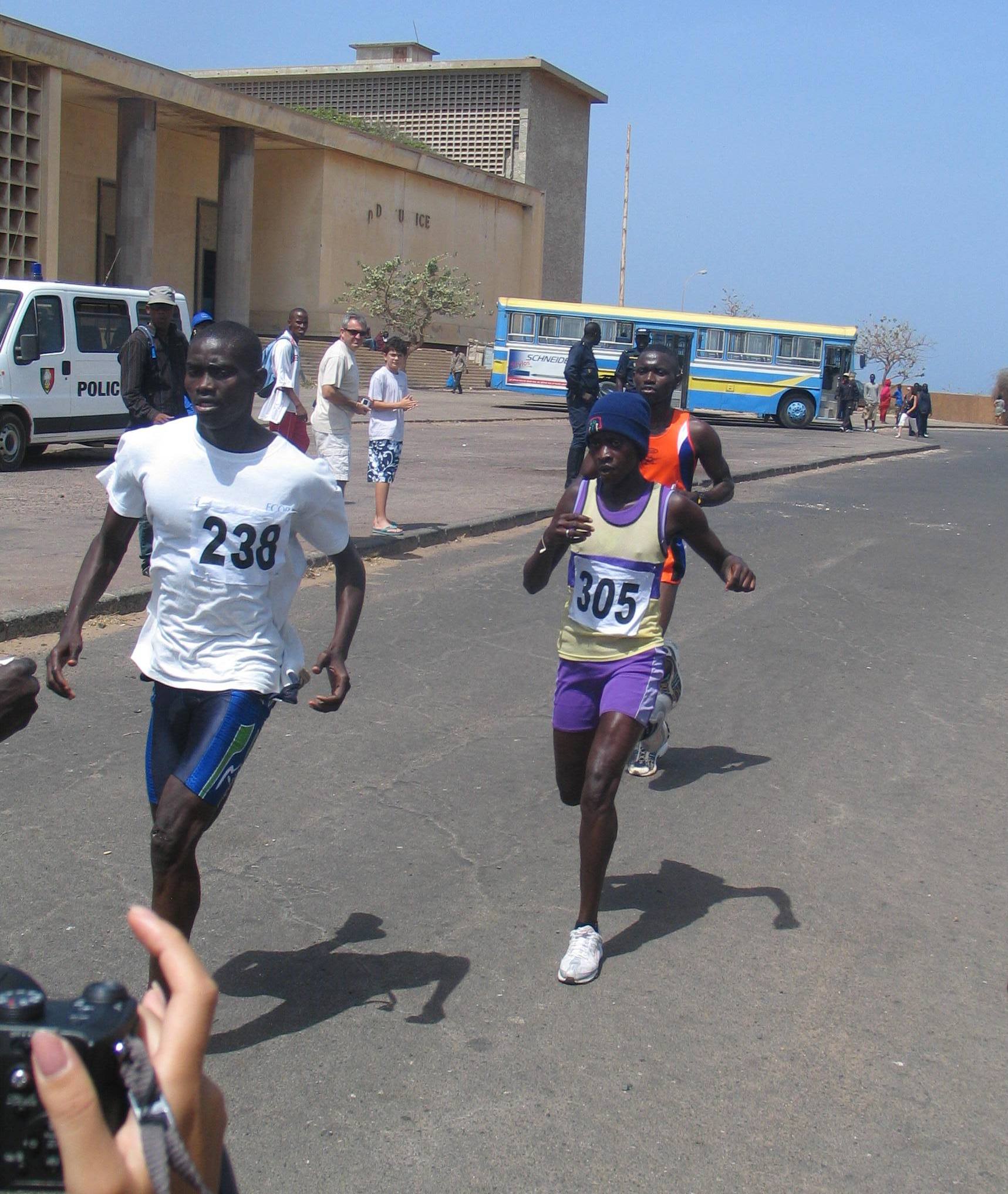 En moins de 25 minutes, Ibrahima Gningue de l’Asfa, comme un météore, fait la différence sur la montée, à 500 m de l’arrivée, devant Cheikh Ndiaye lésé par la courte distance. Il ne retrouvera pas son second souffle : « cette course est très courte pour moi car je court habituellement sur des distances de 20 à 40 km. Je reviens du Marathon de Lagos où j’ai battu mon record personnel en terminant 4ème sur 1 800 participants. C’est évident que sur 6km, je manque de la vitesse, j’ai du mal à augmenter mon rythme. »
