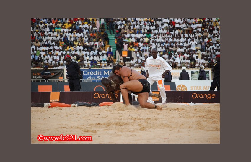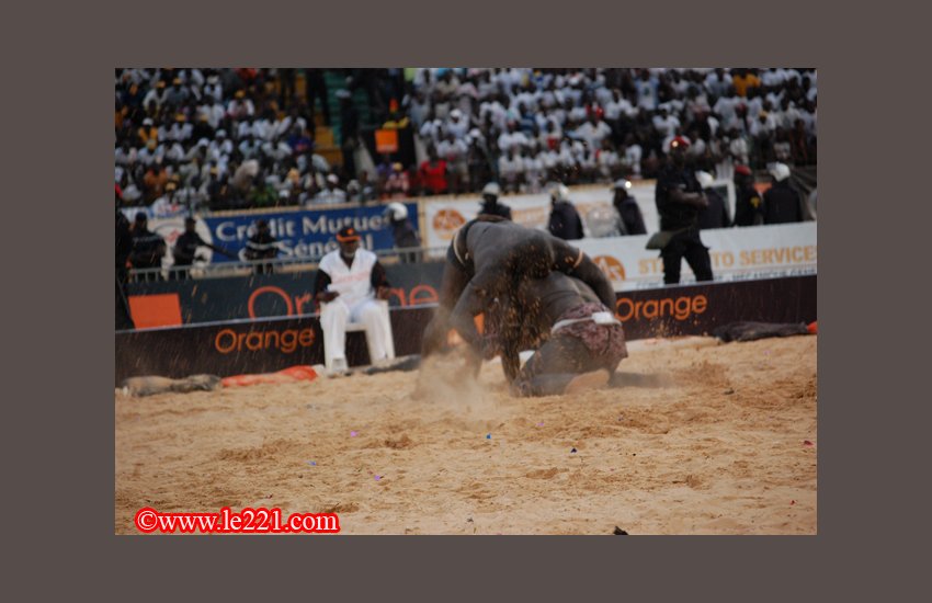 Très souple, le chef de file de l’écurie Ndakaru feint la prise de son adversaire avant de le bloquer à terre pour lui faire mordre la poussière avec les quatre membres au sol, synonyme de défaite.