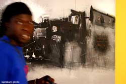 "C’est un choix. Après mon primaire, j’ai dû aller poursuivre à Dakar mon parcours scolaire. J’étais logé chez une tante qui habitait dans un quartier populaire. J’ai été très sensible à l’ambiance et lorsqu’il a fallu choisir un thème de fin d’études pour les Beaux -Arts, c’est naturellement que j’ai choisi celui des quartiers populaires et du désordre architectural".