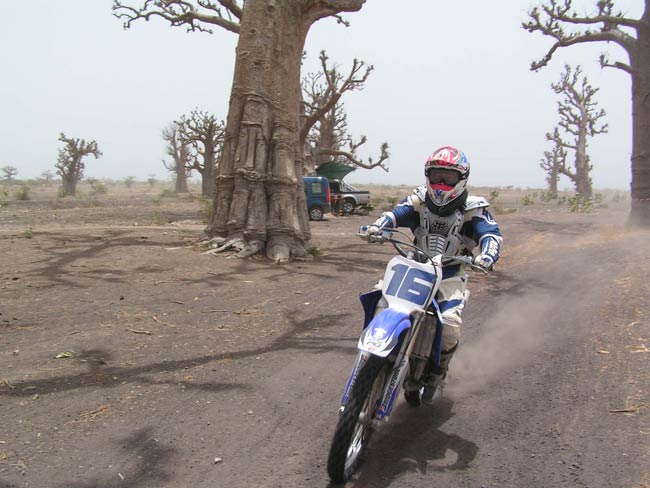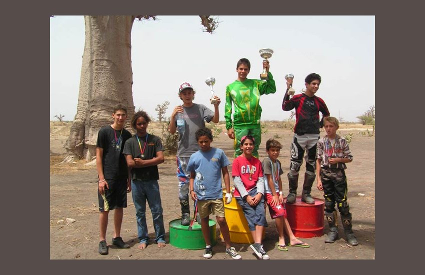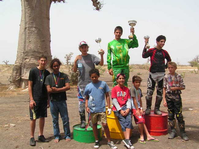 A la suite d’une casse mécanique (chaîne de transmission) pour Rodrigue au casque d’or qui confirmait sa 2ème position, la chance a été offerte à Hubert Jampy et Raamy Fares pour la 3ème et 2ème place lors d’une rude bagarre. Nos 2 jeunes se sont superbement bien défendus et ont sorti leurs griffes pour s’accrocher. Loin devant aux trois manches, notre Robin des Bois, N°86, s’est octroyé le Holeshot et s’est envolé vers la victoire avec une facilité inouïe et un tel plaisir à piloter sur ce terrain que sa moto surfait d’une bosse à l’autre, d’un baobab à l’autre. Il a offert un spectacle ahurissant de technique, de maîtrise et de plaisir débordant au public, venu nombreux de tous les coins du sénégal.
