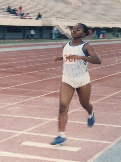 J’ai pratiqué pas mal de sports : l’athlétisme, la natation, le taekwondo et le football. En fait, quand j’étais jeune fille j’aimais bien courir. C’est en faisant des petites courses avec mes copines que je suis tombée amoureuse de l’athlétisme. C’est en 1988 que j’ai eu ma première licence.