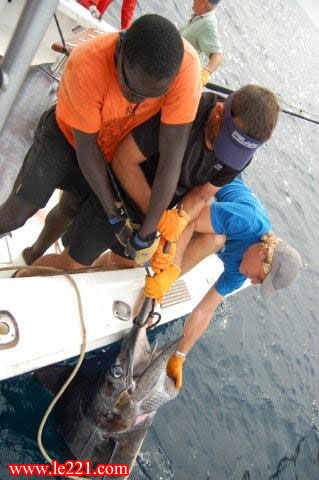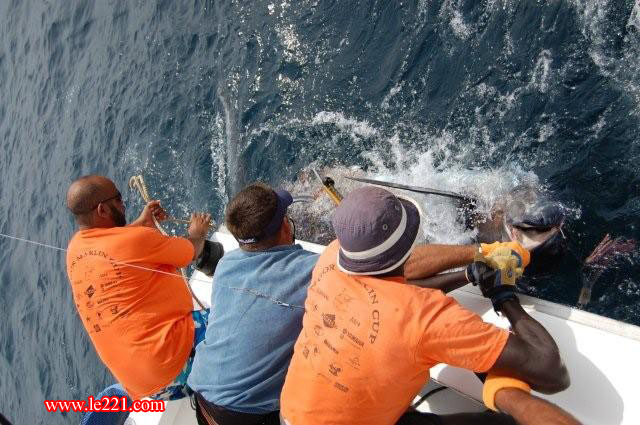 Michel Delaunay, à 73 ans, a réalisé la meilleure prise du concours sur un marlin de 245 kg avec un fil de 80 lbs au bout de 1h 30 mn de combat.
