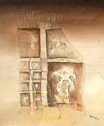 Pour notre peintre, les arbres, les buldings, les maisons, les océans sont toute une belle chorégraphie divine dédiée au fil. L’imaginaire de l’artiste nous plonge dans la mosquée de Djenné en nous offrant les fils de cette architecture des étoiles Dogon.
