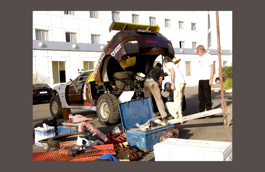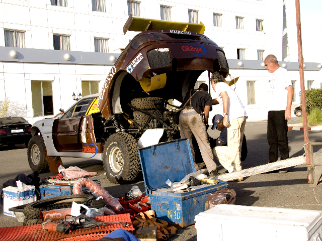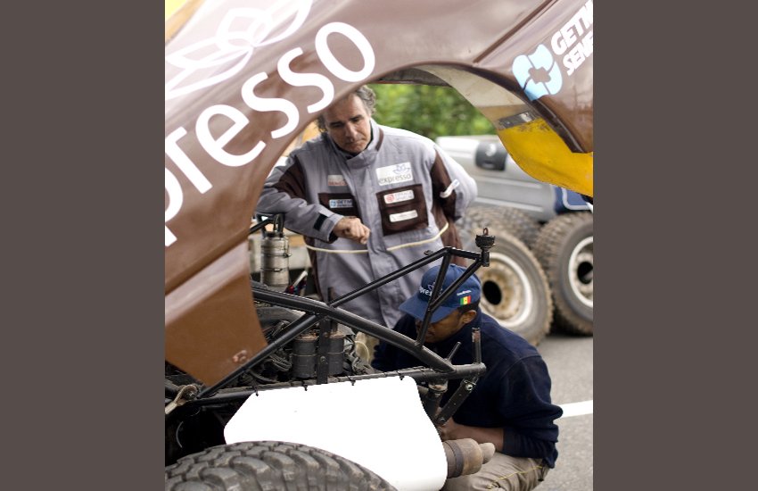 Côté voiture, le buggy à motorisation Porsche piloté par Thierry de Lavergne et copiloté par Thierry Maury profite de ses derniers réglages. Papa Alioune Diop et Léon Diouf, chefs d’orchestre techniques du Sénégal Racing Team, sont en train de procéder à des vérifications de températures moteur sur le buggy Expresso SRT.