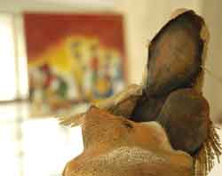 Joachim Bassène partage son temps entre la création et l’animation d’ateliers permanents d’arts plastiques auprès des jeunes publics, à Ziguinchor et, plus récemment, Kafountine