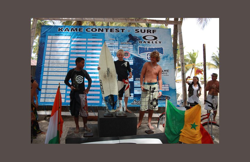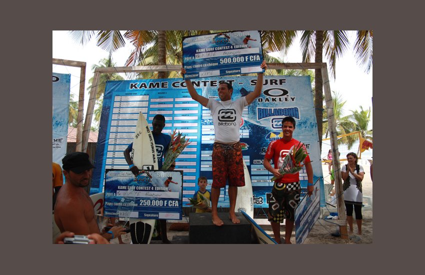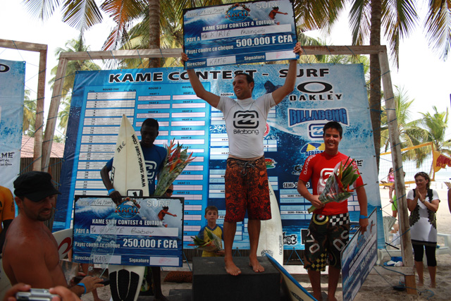 Avec un Prize money de 1 400 000 F CFA, François Kirié se taille la part du lion en empochant un chèque de 500 000 F CFA. La deuxième place revenant au sénégalais Babou Gueye du Surf Attitud, il gagne 250 000 F CFA. L’Ivoirien Pierrick Bogart hérite de la troisième place et se contente d’un montant de 125 000 F CFA.