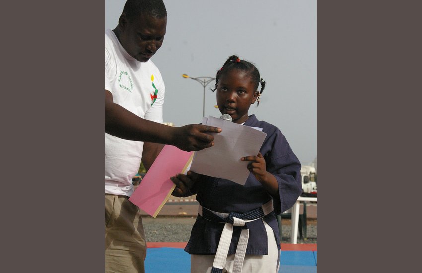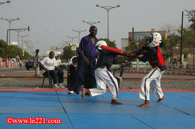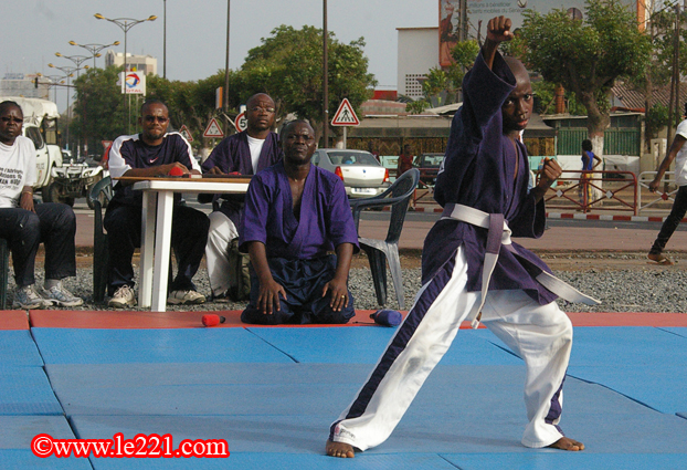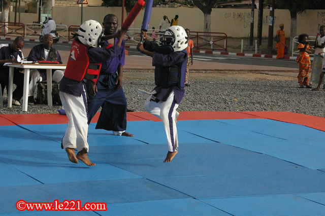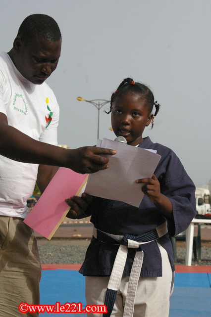 Après les éliminatoires du matin au dojo de la maison de la douane au point E, les gosses se sont rendus à la place de l’obélisque pour les finales qui ont été de niveau appréciable. Parents et amis étaient présents et les tout-petits s’en sont donnés à cœur joie. D’abord un discours de bienvenue lu par une fille, ensuite des démonstrations exécutées par les enfants eux-mêmes devant le public.
