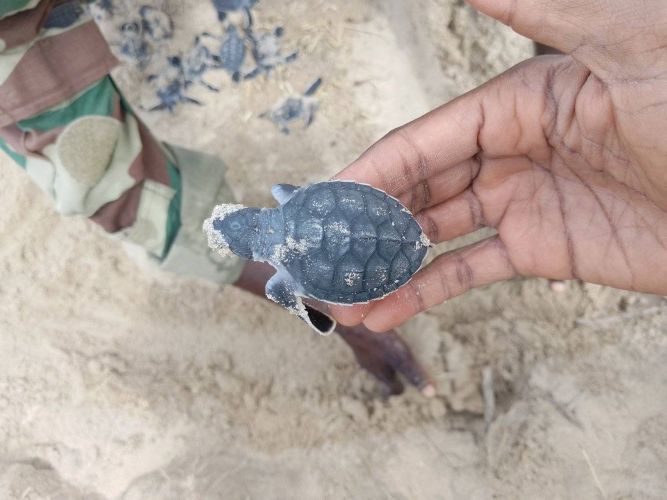 Malgré ces difficultés, des signes encourageants demeurent. Cette année, quatre nids ont été recensés à Abéné. Le troisième nid a récemment donné lieu à une éclosion après 47 jours d’incubation : 66 tortues marines ont rejoint l’océan.