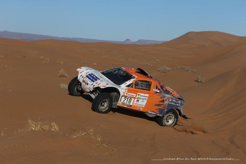 L’équipage sénégalais Dakar Dream Team amené par Philippe Porcheron- Cédric Rivet sur Buggy MD et Hervé Toscano- Thibaud Sans sur Nissan Springbox connaîtront peut-être les joies d’une arrivée de l’Africa Eco Race après deux semaines de courses. Familles et amis seront au rendez-vous pour un accueil réconfortant. Le couple Thierry Maury- Jeanne Malouf est hors course depuis la deuxième étape.