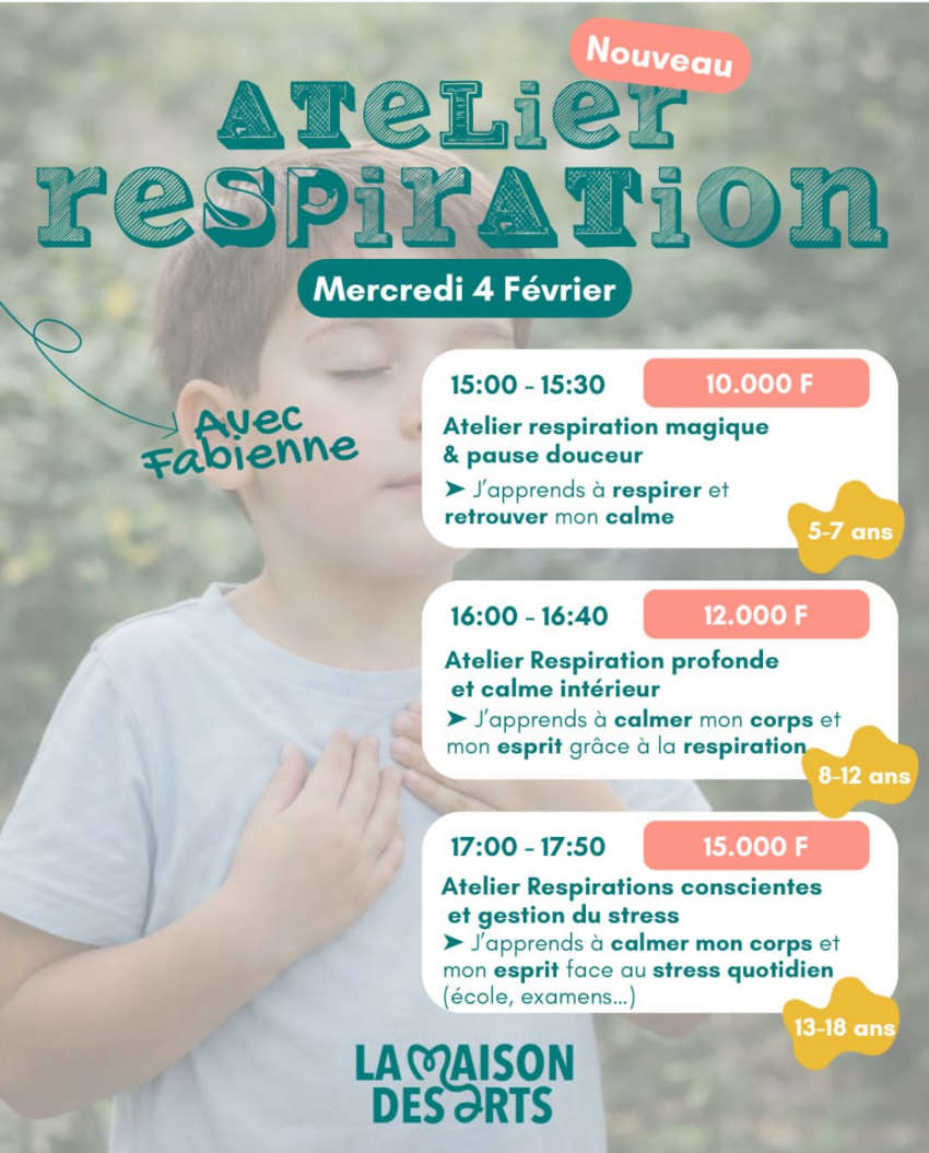 Animé par Fabienne, cet atelier permet aux participants d’apprendre à respirer consciemment, à se recentrer et à retrouver un état de calme intérieur. Les séances sont adaptées à chaque tranche d’âge et favorisent le bien-être émotionnel et corporel.