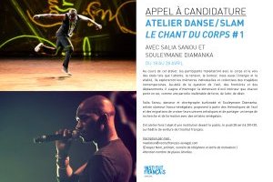 Appel à candidatures atelier danse/slam : Salia Sanou, danseur et chorégraphe burkinabé et Souleymane Diamanka, artiste slameur franco-sénégalais proposent à partir des thématiques de l’exil et des migrations de croiser leurs univers artistiques et de partager un temps de recherche et de formation avec des artistes sénégalais.