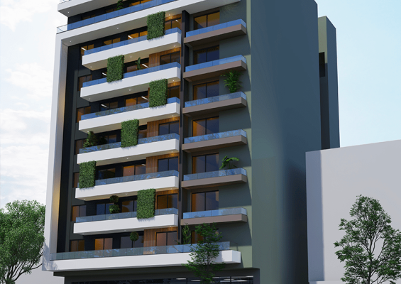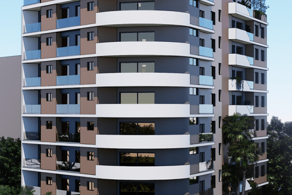 Composée de 16 appartements de type F4 et F5 sur 9 étages, le dernier niveau est coiffé d’un loft au ton charmant et élégant.