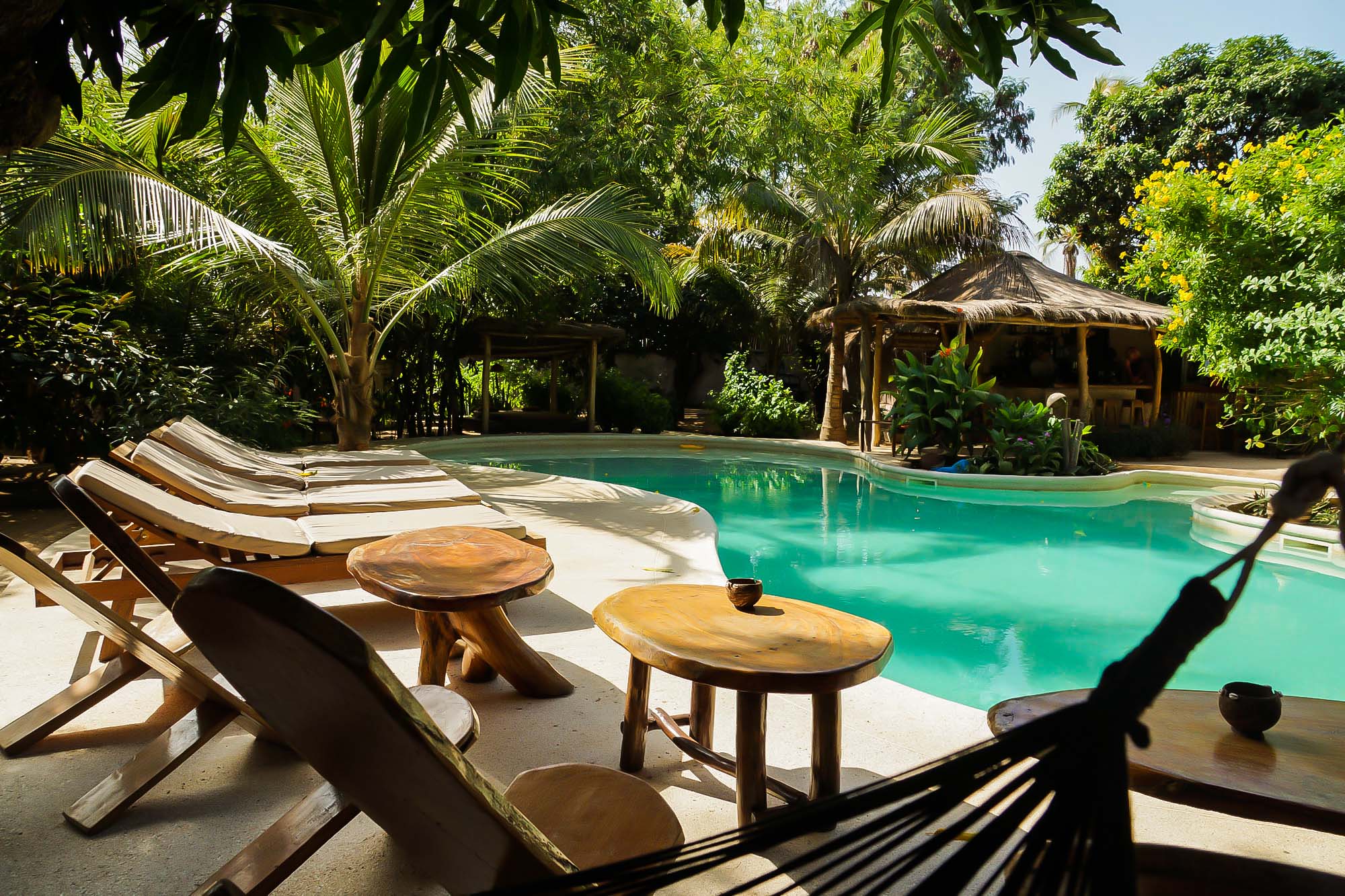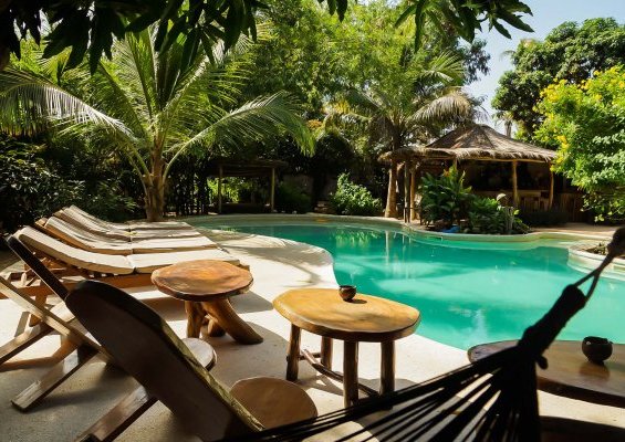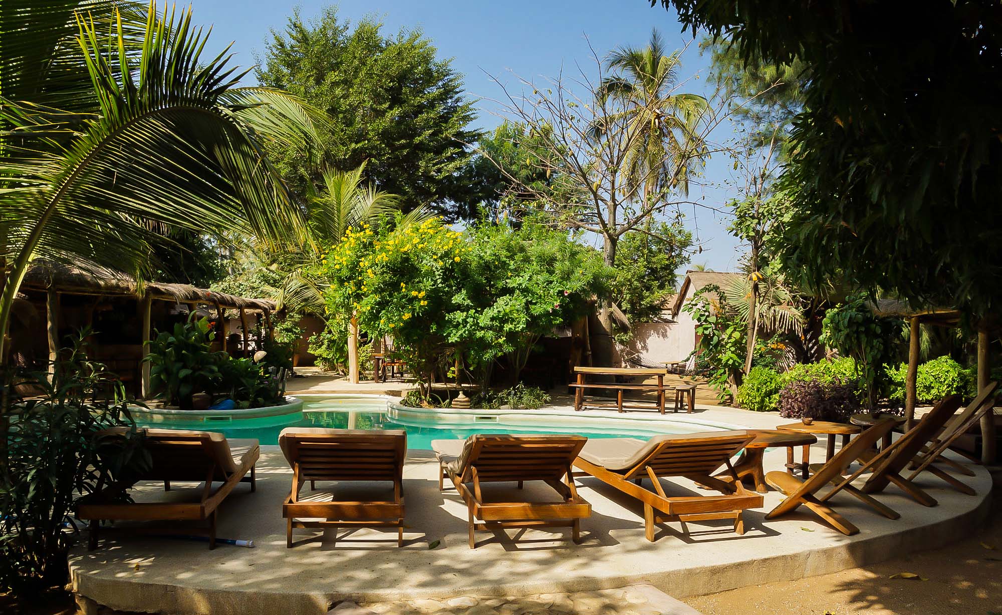 Articulé autour d’une jolie piscine intégrée dans une végétation luxuriante, le lodge se compose de six cases typiques climatisées, construites en s’inspirant de l’habitat ancestral. Olivier et son équipe ont merveilleusement joué avec les bois nobles, les pailles, les techniques de banco et torchis, les tissus, les objets pour offrir à leurs hôtes des chambres feutrées, confortables et d’une originalité au goûts exquis.