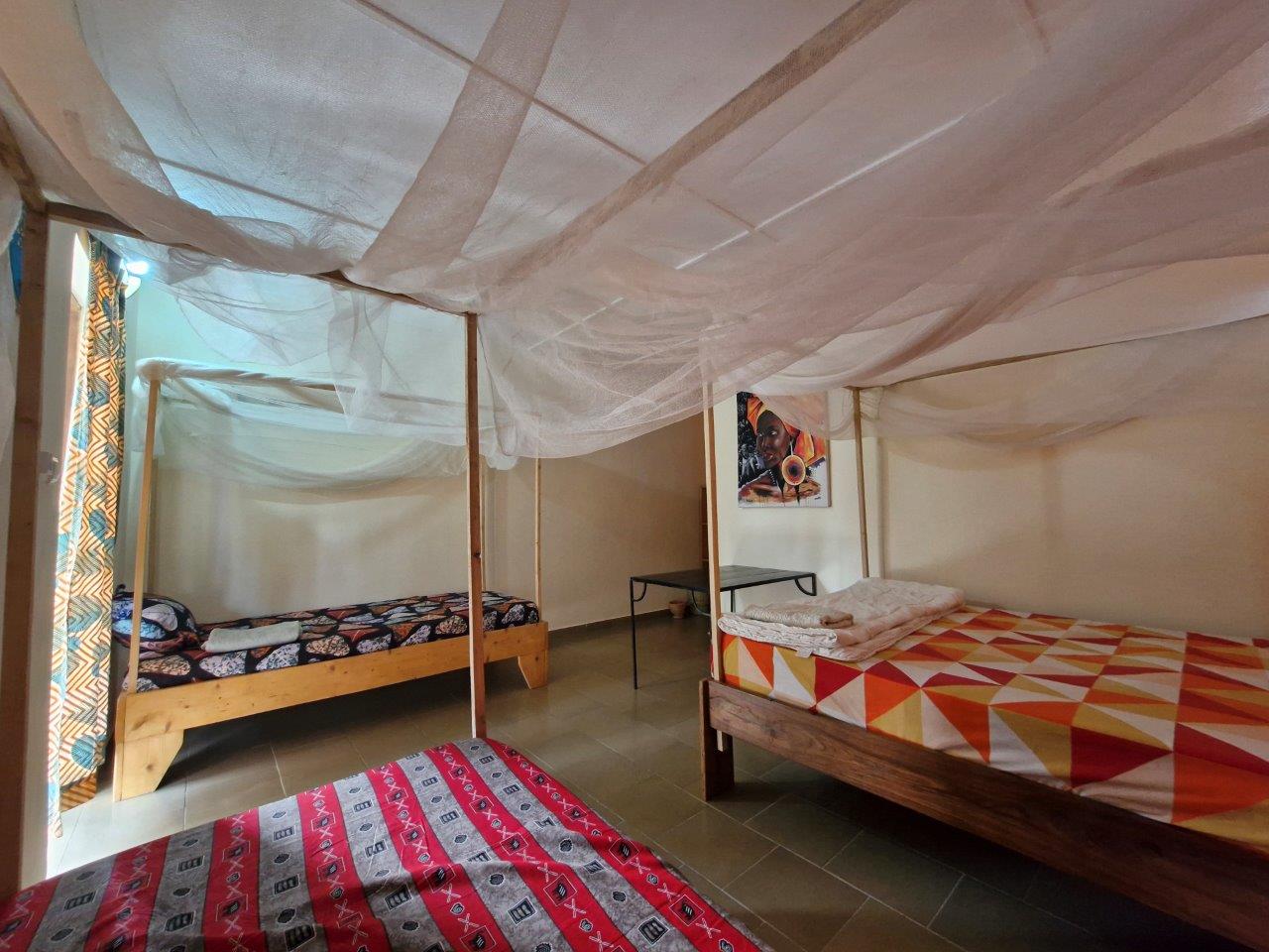 Le Campement Chez Campos propose 14 hébergements, dont 13 chambres confortables et un studio indépendant. Parmi les chambres, 9 sont équipées de lits simples, doubles ou triples, pouvant accueillir jusqu’à 22 personnes. Toutes les chambres sont ventilées, disposent de salles de bain privées et offrent un confort idéal. Les chambres comprennent une terrasse avec vue sur le jardin. Le studio, quant à lui, constitue une option idéale pour les voyageurs en quête d’autonomie.