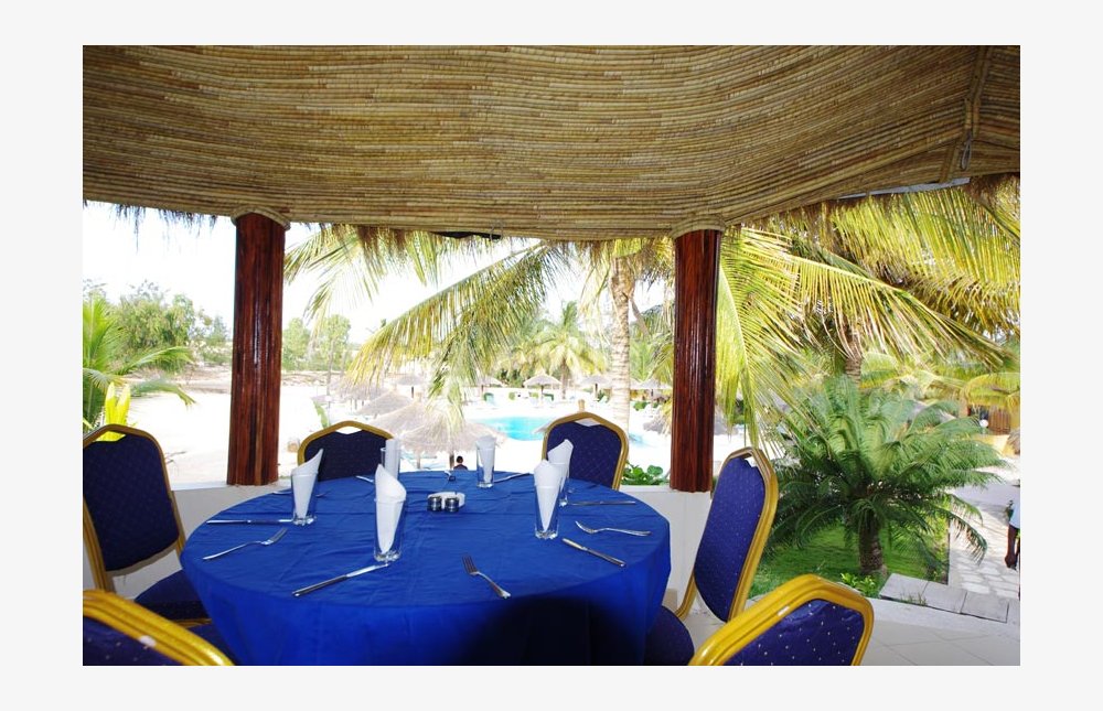 Deux autres restaurants, l’un situé à côté de la piscine, l’autre dans la vaste cour de l’hôtel, juste recouvert de toit de chaume, l’endroit est aéré et fleure le bien-être.