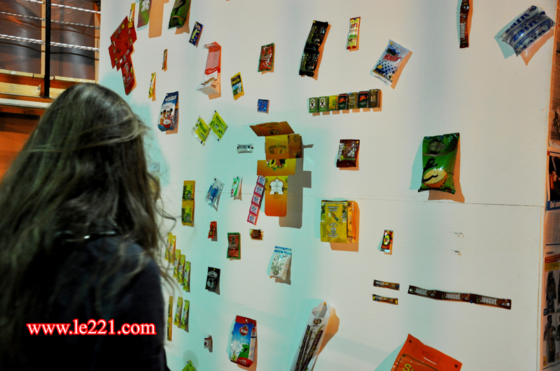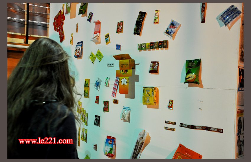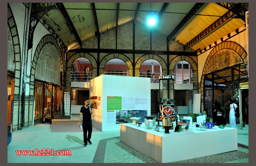 Les deux designers dont les œuvres sont également visibles au restaurant l’Endroit présentent à l’intérieur de la gare une approche du design par le culturel, le social mais aussi le contexte économique. Unes de journaux, Tshirts Yen a marre, sachets d’épices bouillons et autres, le quotidien au Sénégal en somme.