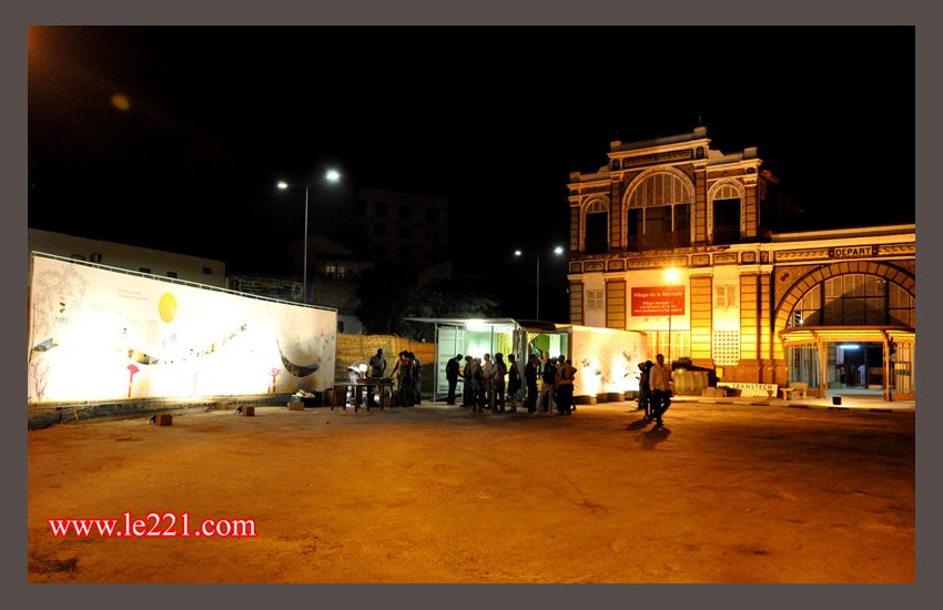 Le cocktail d’ouverture de la Biennale traditionnellement offert à la mairie a donné le ton car redirigé vers la gare ferroviaire, bâtisse qui semble presqu’abandonnée. Requinquée pour l’événement, elle accueille expositions et différentes programmations.