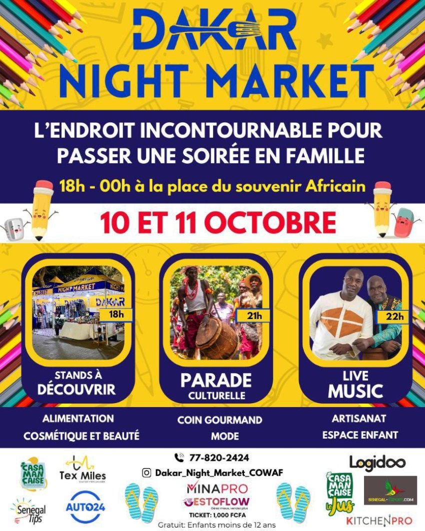 Plongez dans l’ambiance du Dakar Night Market, un espace unique où se mêlent stands de gastronomie, mode, beauté et artisanat. Entre la parade culturelle prévue à 21h et le concert live à 22h, petits et grands pourront profiter d’une soirée conviviale, rythmée et colorée. Un coin gourmand et un espace enfants complètent le programme pour faire plaisir à toute la famille.
