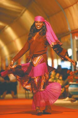 Quand les mannequins de Paco Ndiouli apparaissent, il en résulte un festival d’imprimés. Il reste dans le même style et propose des vêtements jeunes et sexy, sans vulgarité.