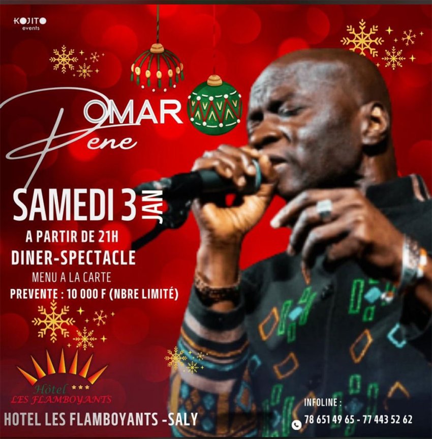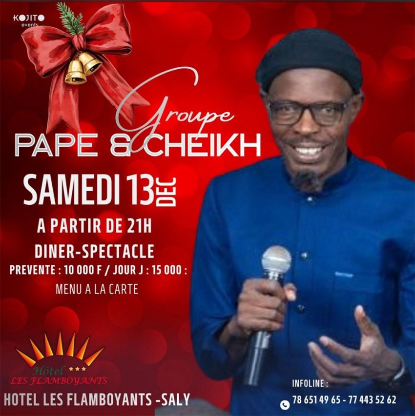 Vendredi 12 décembre - Samedi 13 décembre - Samedi 20 décembre - Mercredi 24 décembre - Jeudi 25 décembre - Vendredi 26 décembre - Samedi 27 décembre - Samedi 3 janvier 2026 - Les Flamboyants Saly