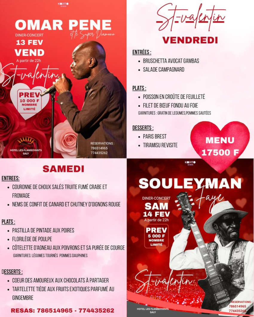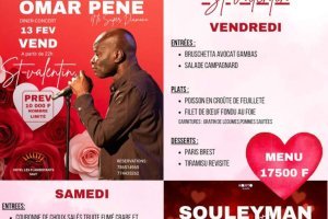 Le vendredi 13 février, place à Omar Pène et le Super Diamono pour un dîner-concert à partir de 22h, avec un menu spécialement imaginé pour la Saint-Valentin.