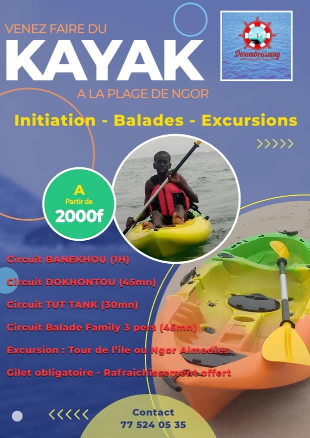 Dioumboussang-Trip organise des mini-croisières sur l’île de Gorée, l’île des Madeleines et Anse Bernard, ainsi que de la plongée sous-marine.