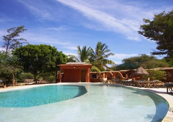 Situé entre les plages de sable blanc et les lagunes du Delta du Saloum, l’Ecolodge de Palmarin dispose de 20 chambres en bungalows climatisées avec salle de bain privative donnant une vue sur la mer. Les chambres sont fabriquées à l’ancienne avec un mélange d’argile, de paille et de sable.