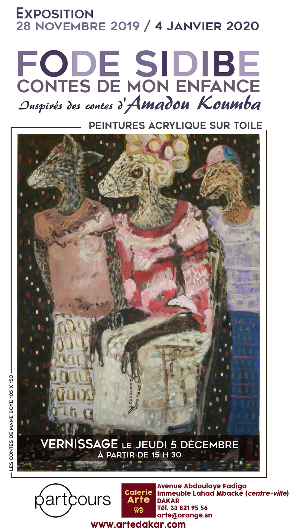 L’artiste voyage dans le temps en se remémorant les contes d’Amadou Koumba, écrits par le poète Birago Diop. Les contes lus par Mame Boye, sa grand-mère, le soir le fascinent encore jusqu’à ce jour. Lorsqu’il avait 7 ans, nourri par ces récits, Fodé a commencé à dessiner. Depuis, il n’a jamais cessé puis s’est tourné vers la peinture. C’est un artiste autodidacte qui s’est formé auprès de ses professeurs au lycée et également dans les ateliers d’autres artistes reconnus.