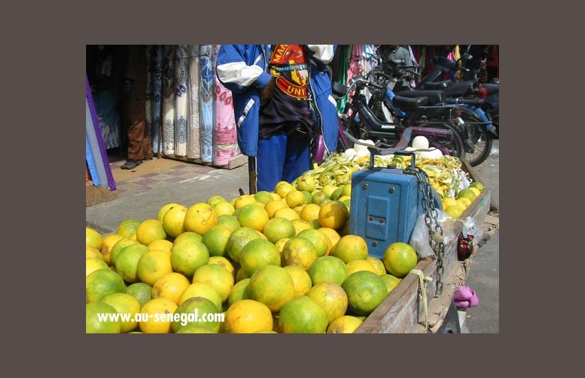 On trouve aussi des pamplemousses (les roses sont meilleurs), des papayes (la variété solo à la chair rose, de plus petite taille sera appréciée avec un filet de citron), des oranges (souvent peu juteuses, mais bonnes — consommer à la sénégalaise — pressée entre les dents), des melons, surtout destinés à l’exportation, des corrosols et des goyaves, au parfum délicat et exotique, des mads (fruits contenant de grosses graines entourée de pulpe, vendues dans la rue mélangés à du sucre), des bananes produites en petites quantités et souvent importées de Côte d’Ivoire, comme l’ananas.