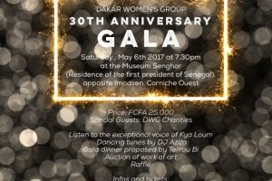 Le Dakar Women’s Group a opté pour un billet d’entrée abordable de 25.000 fcfa (incluant le diner et toutes les festivités) pour permettre au plus grand nombre de venir célébrer les 30 ans de l’Association. Les billets peuvent être achetés aux points suivants : Plateau (773437769), Point E / Mermoz (783891907) et Almadies (773437769). Les billets seront aussi mis en vente au Dakar Farmers Market qui aura lieu a Marina Bay ce samedi 6 mai à partir de 10h du matin. Les invités sont encouragés à venir réserver leurs billets d’entrée le plus tôt possible.
