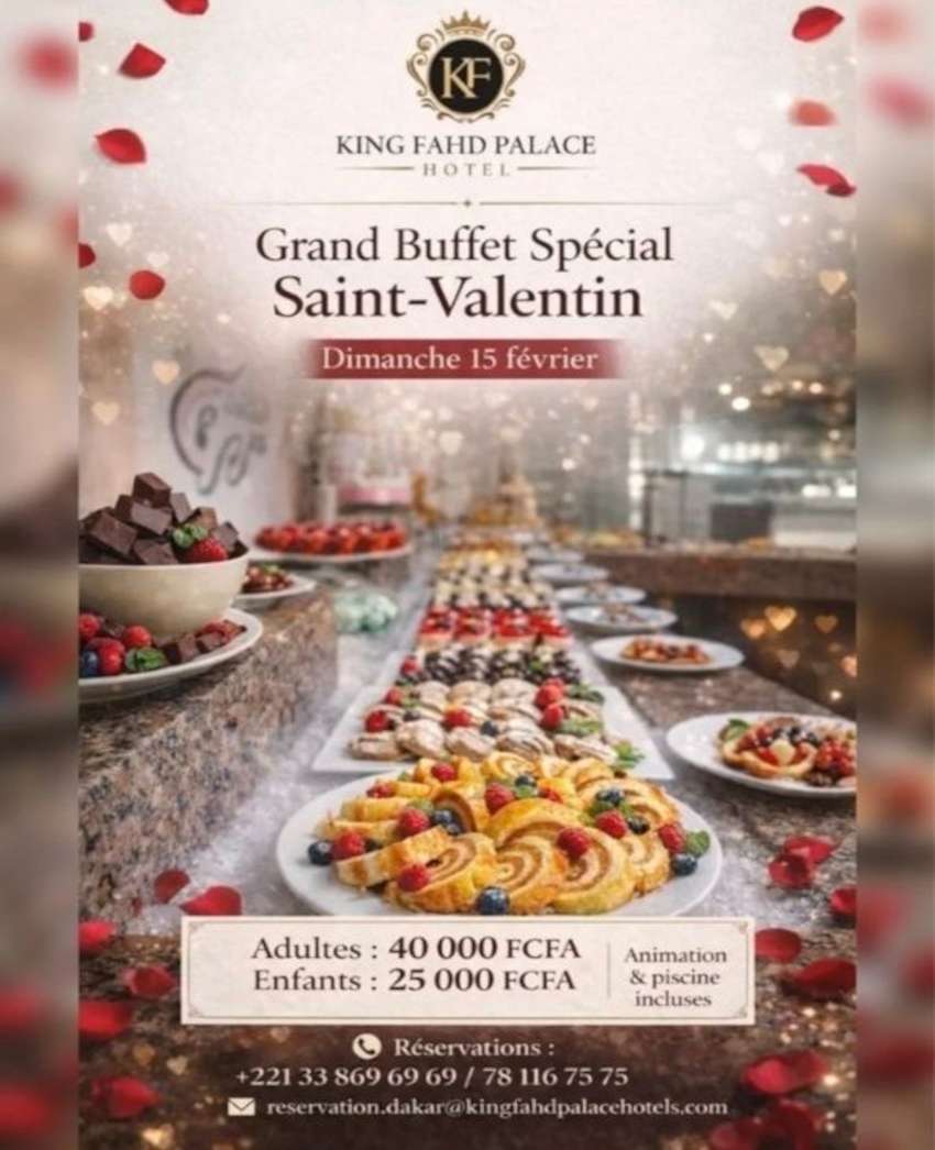 Cette journée festive se déroule dans une atmosphère raffinée, avec animations et accès à la piscine inclus, pour une expérience à la fois culinaire et relaxante. Une belle occasion de prolonger la célébration de l’amour dans l’un des hôtels emblématiques de Dakar.