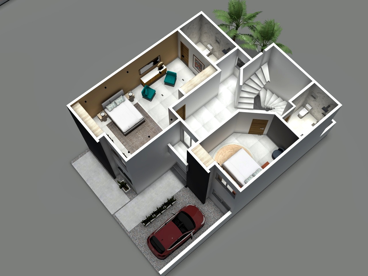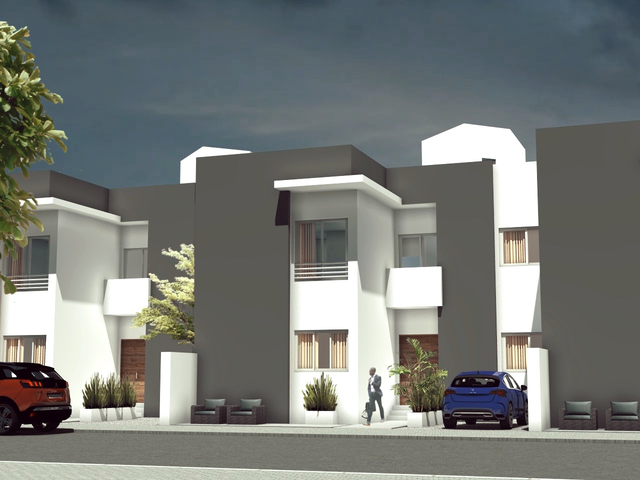 Ce programme résidentiel propose des villas en duplex avec une surface bâtie de 150 m². Chaque villa comprend trois chambres spacieuses et lumineuses, un séjour bien agencé, et un escalier. La cour avant dispose d’un espace de jeux pour les enfants et d’une place de parking.