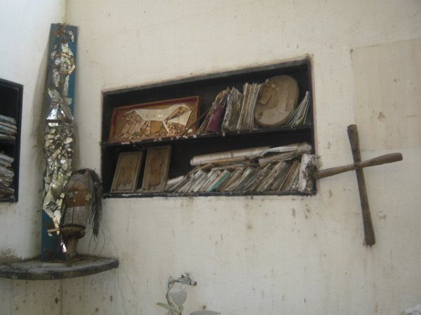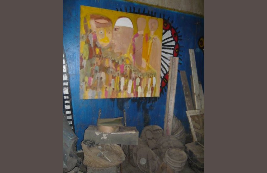 Les autels dérisoires qu’embrasse la poussière, les lambeaux d’existences qui se tendent, les végétaux séchés qu’enduisent les résidus d’un quelconque bûcher, les traces de repas d’une table bancale, les accumulations de livres, les bibliothèques enfouies, oubliées, les signes d’amitiés que déchirent l’absence, les sourires perdus crispés dans le dérisoire de l’argentique, Djibril Diop Mambéty, l’ami à jamais, Khalidou Sy, le doux sourire enfui, Saïdou Barry, le copain de toujours, tant d’autres qui oscillent aux fils tendus par la gravité, les reliques d’installations anciennes, Pléhanov, 4, 6, les crèches de bois fané, les statuaires défoncées, engagées dans les abîmes de l’oubli, les toiles délabrées qu’ont arrosées tant de plus d’hivernage , les clous rouillés par l’amertume, les couronnes d’épines plantées près de la table basse où délicatement s’inscrivent les messages.