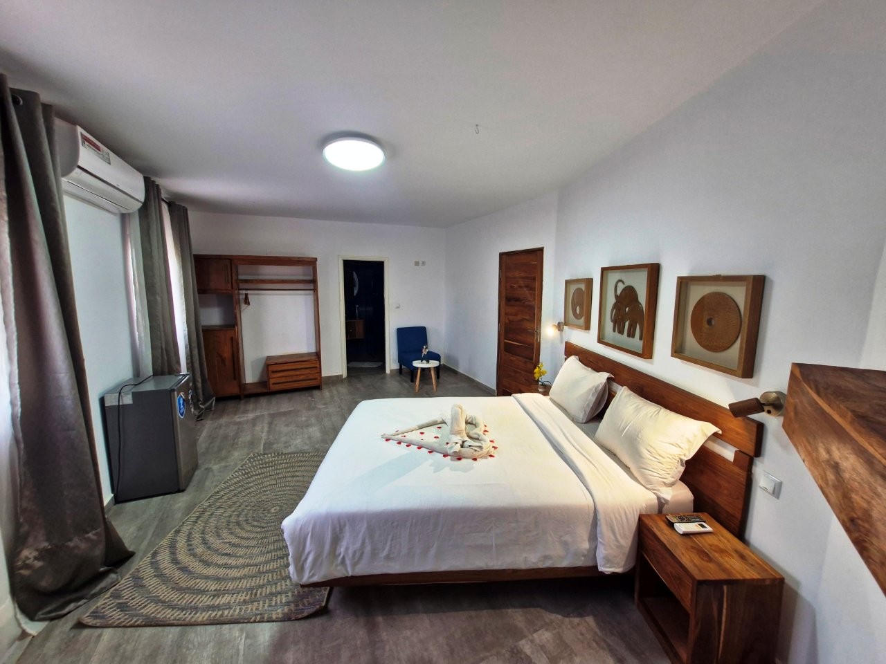 L’hébergement dispose de 25 chambres à la décoration typique du Sénégal, climatisées avec toilettes individuelles. Chaque chambre est équipée d’un téléviseur par satellite.