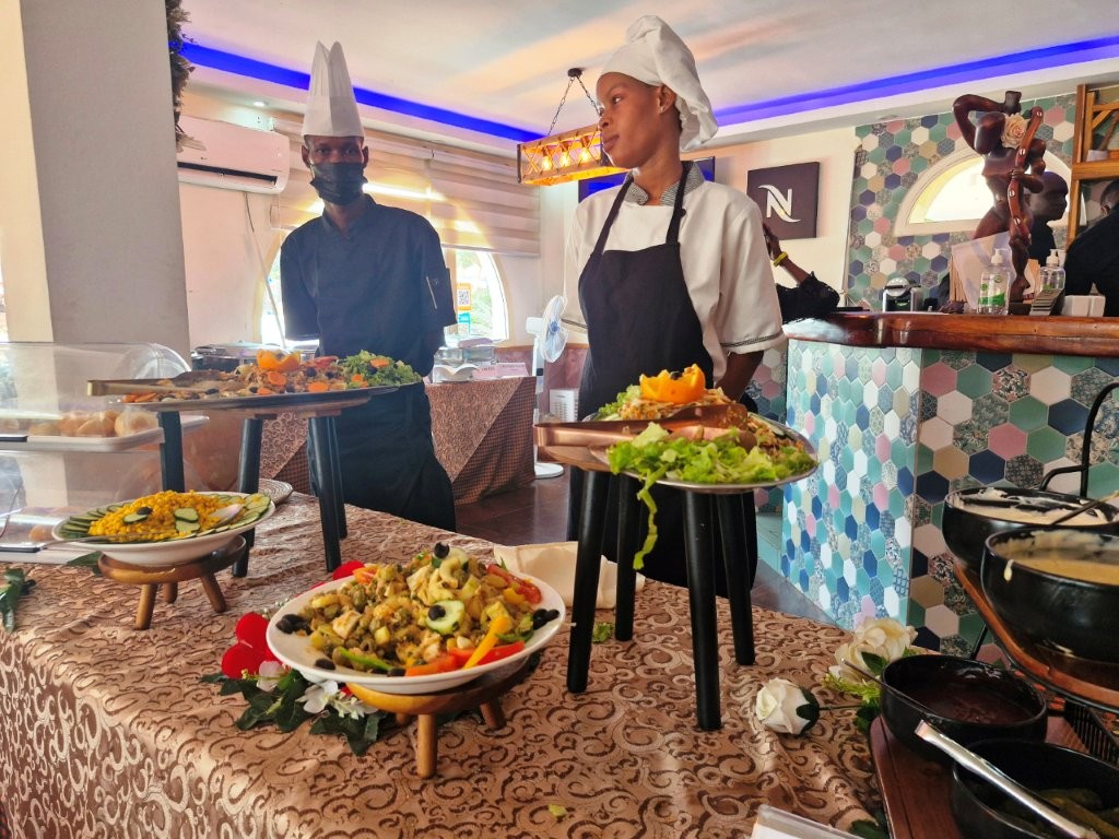 Le restaurant Les Flamboyants, d’une capacité de 100 couverts, propose une cuisine raffinée et variée, mêlant saveurs d’ici et d’ailleurs. Le Chef prépare des spécialités sénégalaises ainsi que des plats inspirés des cuisines occidentales, à base de produits frais, de saison et de la pêche du jour.