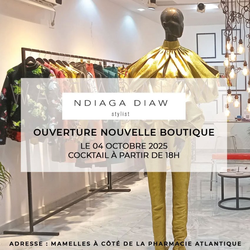 Le styliste sénégalais Ndiaga Diaw inaugure sa nouvelle boutique aux Mamelles le samedi 4 octobre 2025 à partir de 18h. Un cocktail convivial viendra marquer cette ouverture exceptionnelle.
