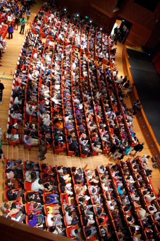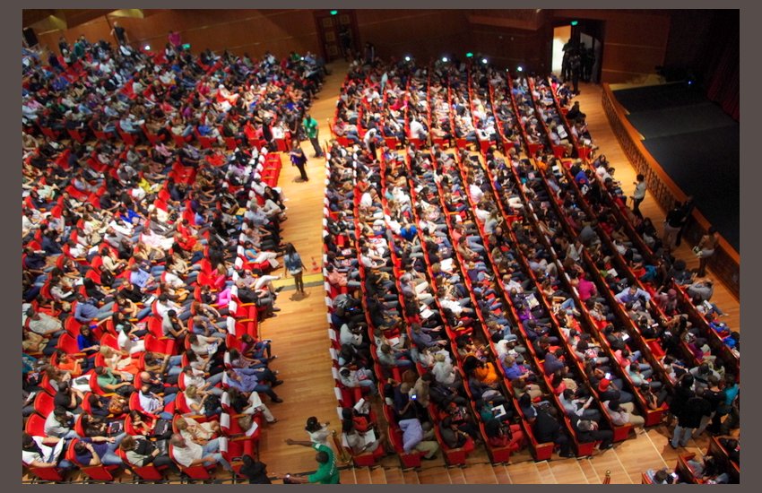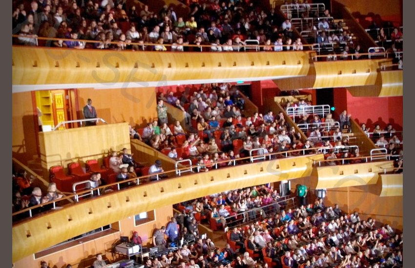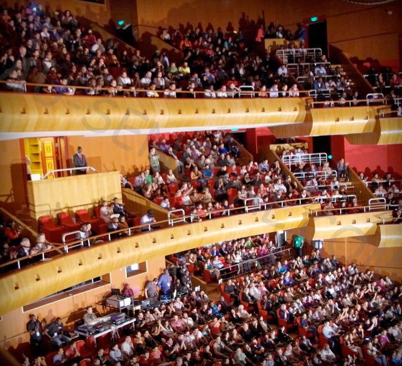 L’entrée s’est très bien passée, de nombreuses hôtesses et un très bon service d’ordre avaient été mis en place. Le grand théâtre était entièrement ouvert, le balcon et les loges d’honneur.