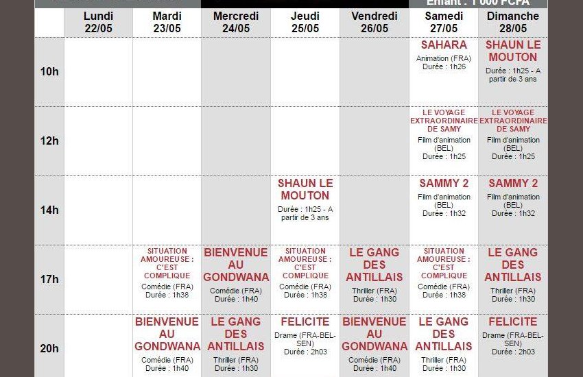 Tarif enfant (-12ans) : 1000 fcfa