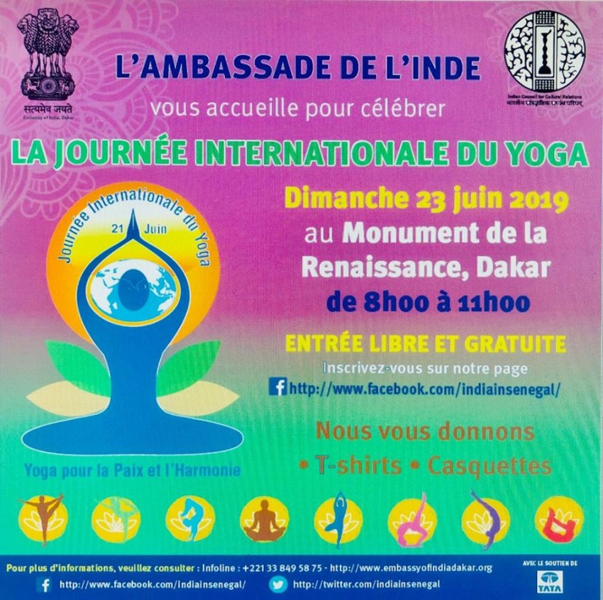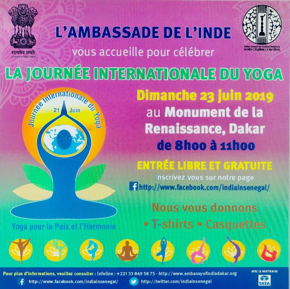 L’ambassade de l’Inde vous invite à célébrer la Journée internationale du yoga au monument de la renaissance africaine de 8 h à 11 h.