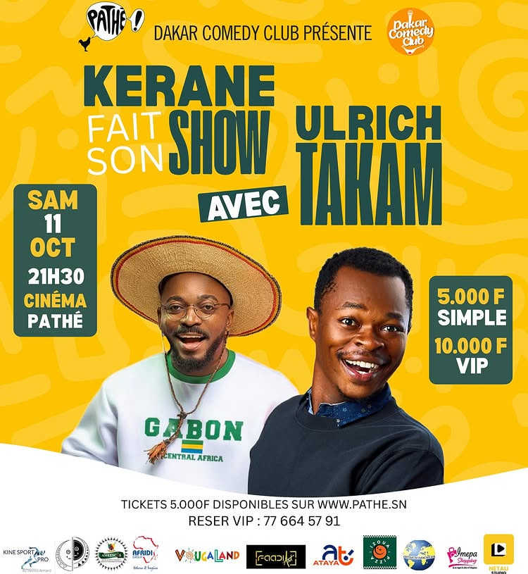 Kerane, figure montante de l’humour sénégalais, partage la scène avec Ulrich Takam, star du stand-up camerounais et voix incontournable de l’humour d’Afrique centrale. Entre punchlines, improvisations et situations cocasses, cette soirée promet des éclats de rire garantis et une ambiance unique.