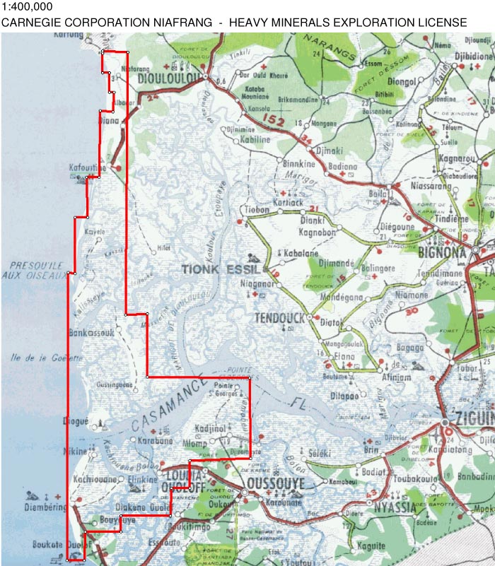 Au début, les porteurs de ce projet ont voulu faire croire aux populations que le projet se limitait à la localité de Niafourang-Abéné. « La zone qui concerne le village de Niafourang est de 7 km de longueur et 150 m de largeur. Mais sur l’arrêté ministériel (n°10455 MEM-DMG en date du 26 novembre 2004, signé à l’époque du président Abdoulaye Wade, ndlr), qui donne autorisation à Carnegi-Astron d’exploiter le Zircon, ça va des côtes gambiennes au nord jusqu’à la frontière guinéenne au sud, c’est-à-dire que c’est toutes les côtes de la Casamance qui sont concernées, soit environ 750 km2. Donc ce n’est pas seulement ce village qui est concerné, les autres villages vont suivre », souligne Ousmane Sané. Tous les documents officiels dont nous avons eu connaissance confirment ces propos.