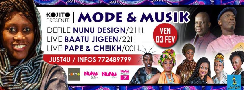 – Vendredi 3 février : soirée mode et musik avec un défilé de Sunu Design à 21h, suivi d’un live de Baatu Jigeen à 22h et un concert de Pape et Cheikh à partir de 00h.