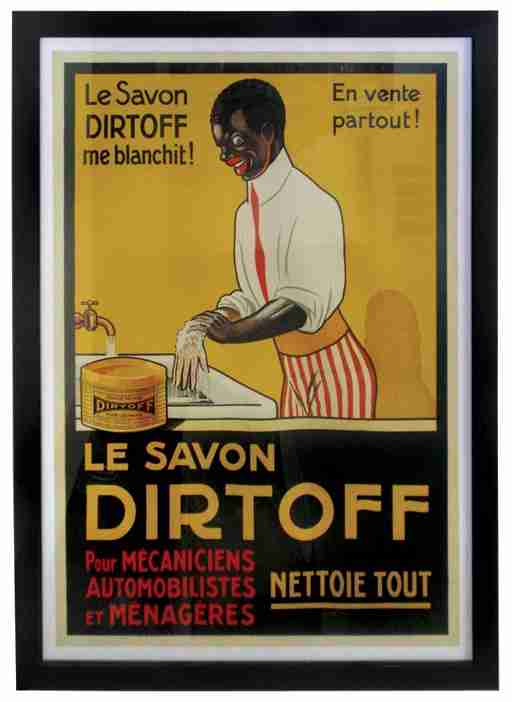 Les marques de lessive vont faire partie des pionnières dans le phénomène de « rejet identitaire », en exposant des affiches ahurissantes montrant des « nègres » qui cherchent à se blanchir avec de la lessive.
