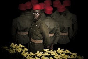 Le 1er décembre 1944, dans un camp militaire de Thiaroye, à Dakar (Sénégal), un groupe de tirailleurs africains, anciens prisonniers de guerre, manifestent pour le paiement de leurs indemnités et pécule promis depuis des mois par la France. Une sanglante répression est ordonnée par l’autorité coloniale. Soixante-dix de ces tirailleurs sont tués sans sommation. Le souvenir de ce massacre reste très vivace dans la mémoire collective de l’Afrique francophone. (Omar Victor Diop – Courtesy Galerie MAGNIN-A)