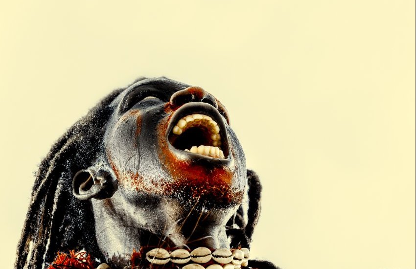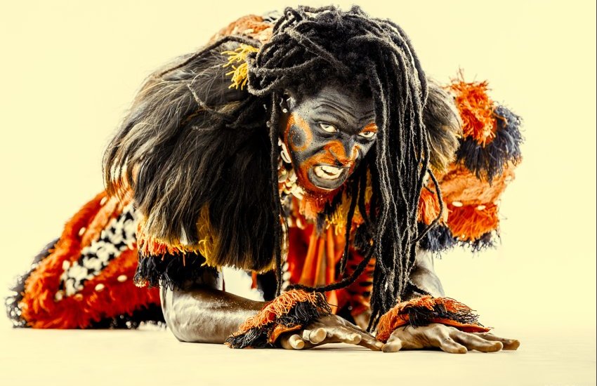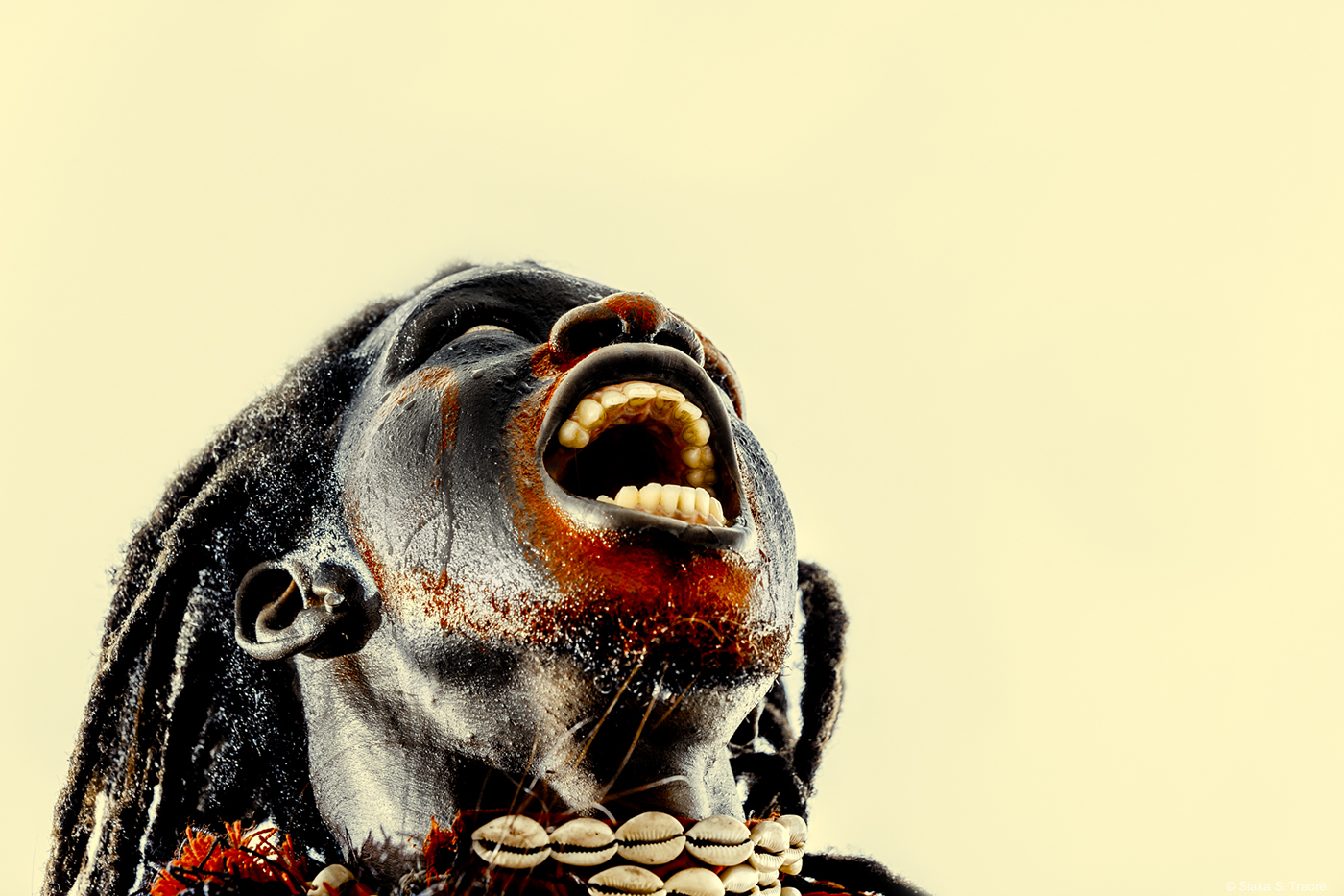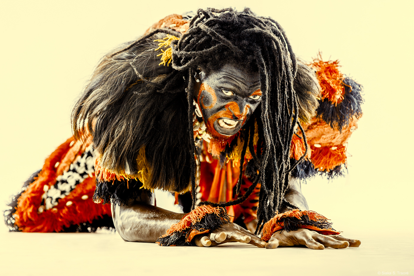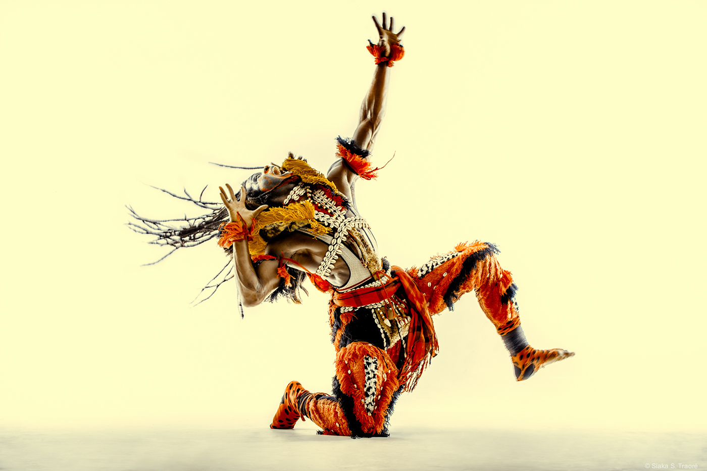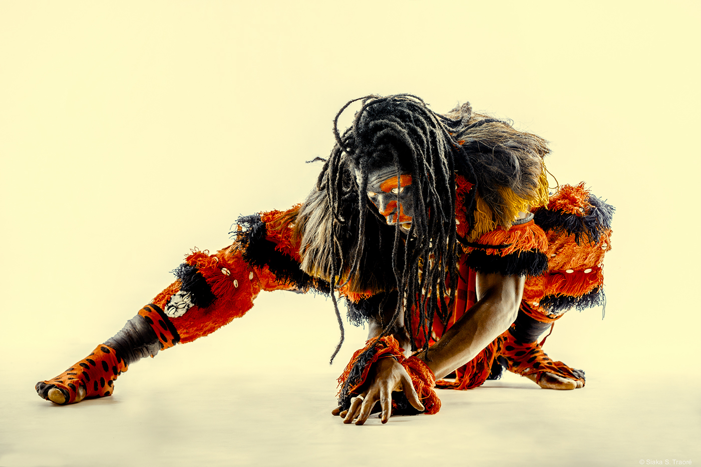 A l’origine, le faux-lion est un rite de possession. Il remonte à l’époque où le Sénégal était couvert d’épaisses forêts peuplées d’animaux sauvages comme les lions, les hyènes, les singes, les chacals, les gazelles. On raconte que le chasseur qui avait été attaqué par un lion et avait survécu devenait une personne étrange. Choqué par sa rencontre, il perdait la tête, il rugissait comme un lion, ne mangeait que de la viande crue, des poils lui poussaient sur le corps. Il était le lion. Pour le soigner, les guérisseurs procédaient alors à des rituels de « possession », tels qu’on les voit encore aujourd’hui dans les cas de possession par un esprit ancestral.