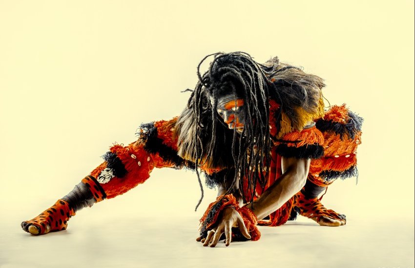 Des hommes se déguisent en lions (faux lions) avec un maquillage imitant le fauve : le rouge et le noir, des visages barrés de moustaches et un aspect terrifiant. Ils arrivent, annoncés par des tam-tam, rugissant, cachés au public par des pagnes, à la place prévue où les attendent déjà organisateurs et spectateurs dans leurs habits de fête.