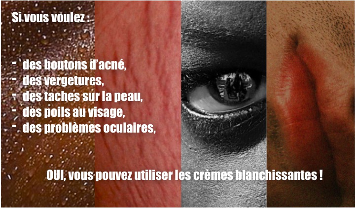 Car oui, les produits dépigmentant sont un véritable danger pour la santé publique, les produits qui les composent variant entre corticoïdes, hydroquinone et résidus mercuriels étant tous potentiellement toxiques. Outre les nombreuses complications dermatologiques observables chez les utilisatrices de ces produits, on soupçonne aussi ces derniers d’être à l’origine de nombreuses affections médicales telles que l’hypertension artérielle ou le diabète.